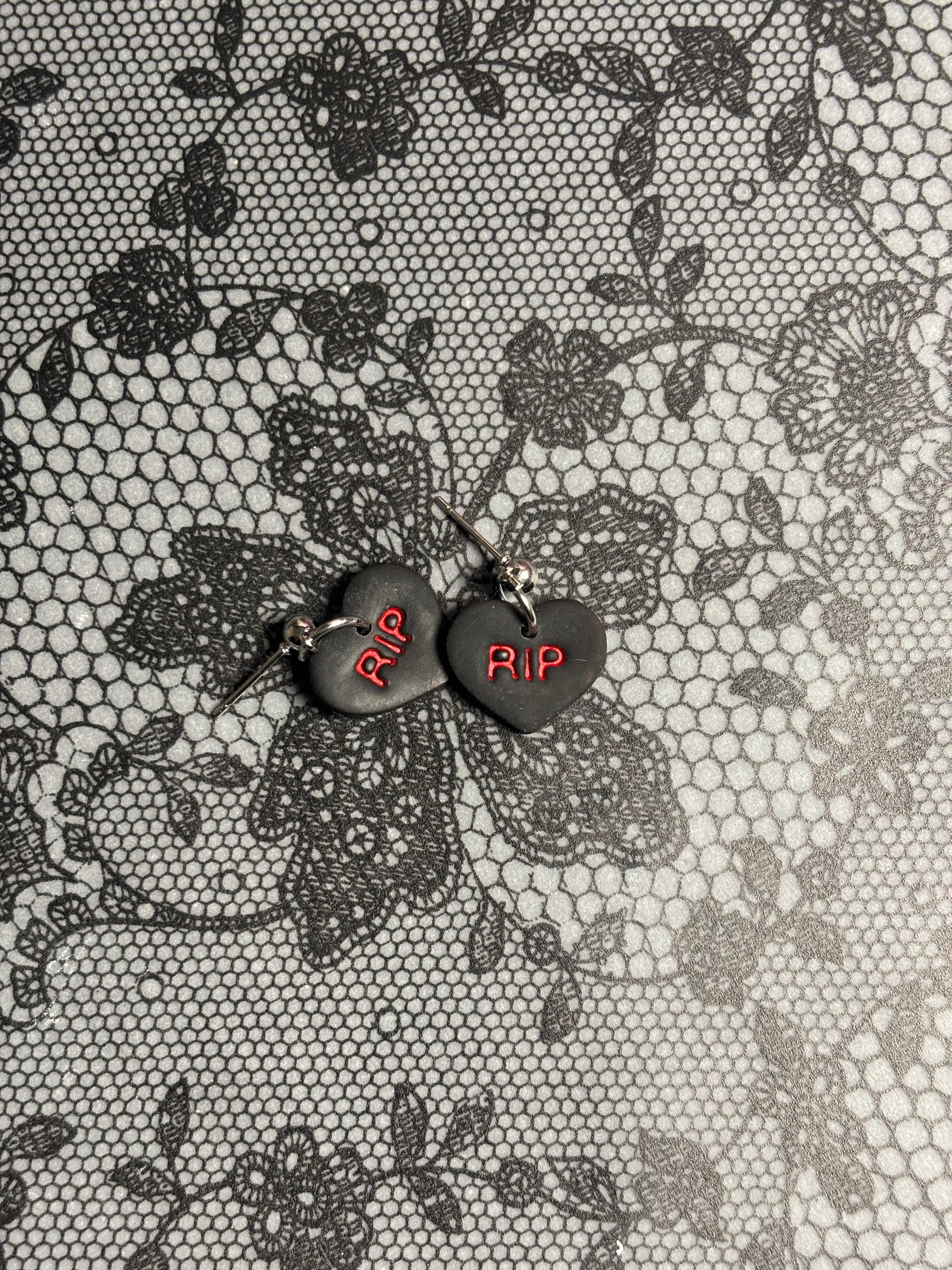 🖤 “RIP” Heart Earrings