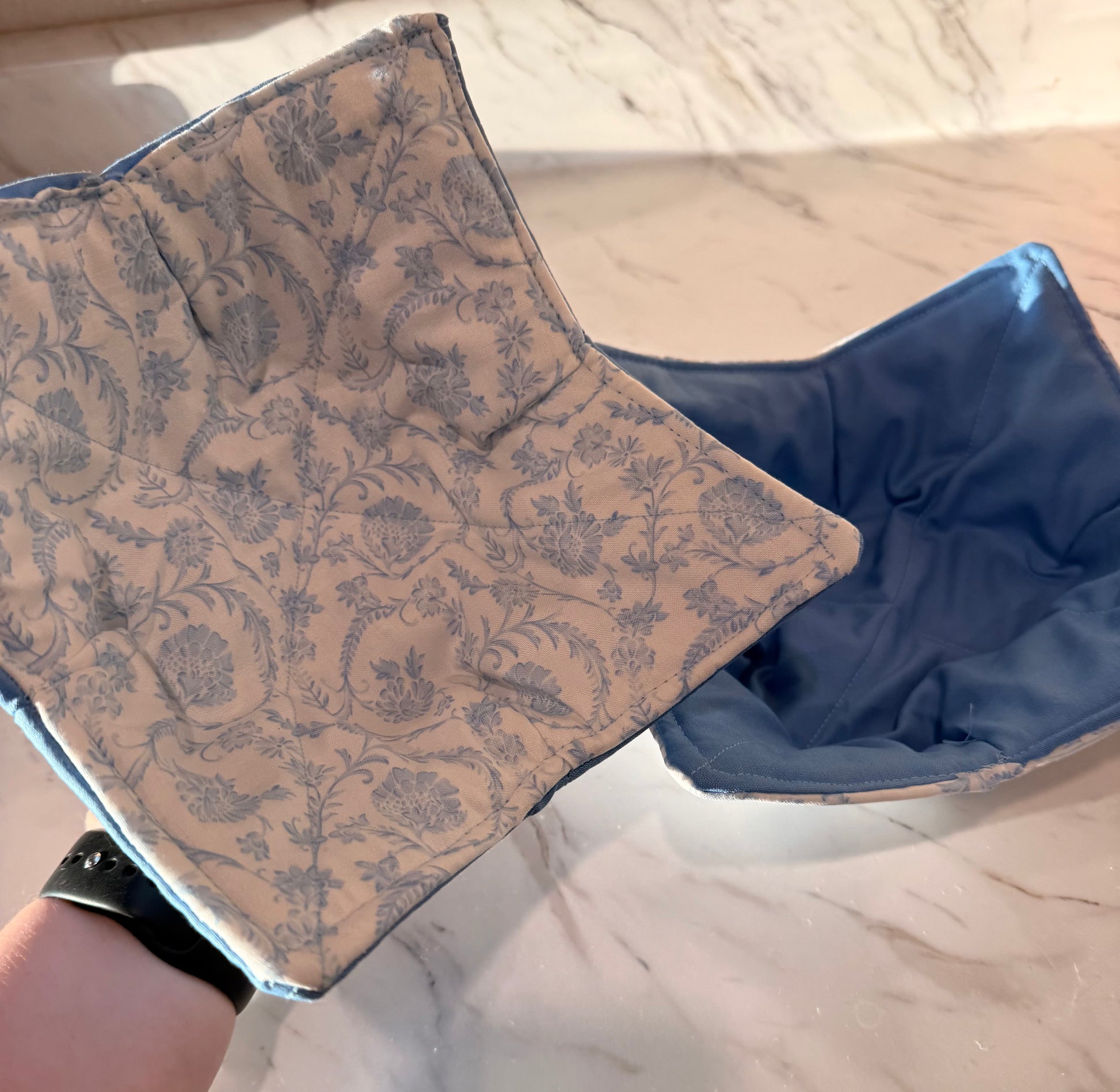 Crafted with care from 100% cotton fabric and heat resistant batting, it’s machine washable and reversible for easy cleaning and everyday use. Perfect for protecting your hands—and your surfaces—while enjoying hot chili, fresh oatmeal, or even a cold scoop of ice cream.
